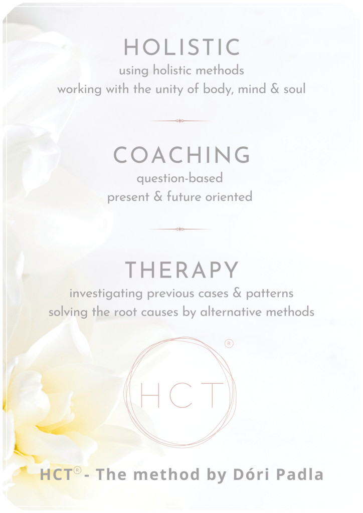 HCT® – Holistic Coaching Therapy is a unique transformational method created from my own healing journey.